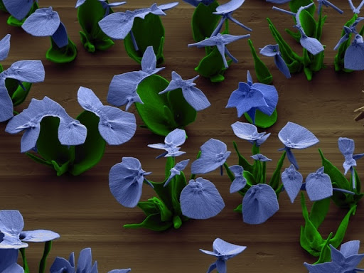 Эти удивительные цветы из кристаллов он «выращивает» при помощи химических реакций в своей лаборатории. Размер этих «цветов» – не более одного микрона (0.001 мм), это удивительное зрелище ученый смог запечатлеть с помощью цифрового микроскопа.